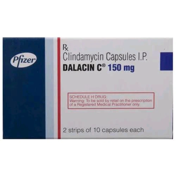 Dalacin C 150 Capsule is an antibiotic medicine used in the treatment of bacterial infections. This medicine contains clindamycin, which works by inhibiting the protein synthesis of the bacterial cell and thereby helps fight infection-causing bacteria. This medicine is not effective for treating viral infections. Common side effects include stomach pain, nausea, vomiting, diarrhoea, heartburn, and skin rash.