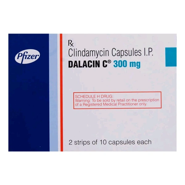 Dalacin C 300 mg Capsule is an antibiotic medicine used in the treatment of bacterial infections. This medicine contains clindamycin, which works by inhibiting the protein synthesis of the bacterial cell and thereby helps fight infection-causing bacteria. This medicine is not effective for treating viral infections. Common side effects include stomach pain, nausea, vomiting, diarrhoea, heartburn, and skin rash.