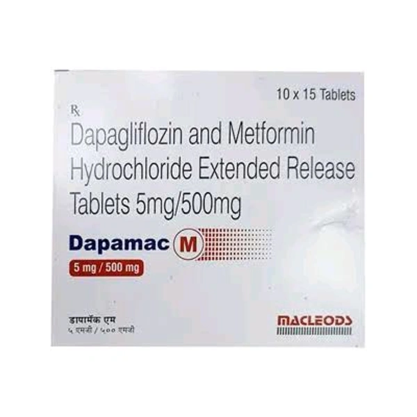 Dapamac-M 5/500mg Tablet is used to treat type 2 diabetes mellitus. It contains Metformin and Dapagliflozin which work by eliminating excess sugars from the body through urine and restoring the body’s response to insulin. In some cases, this medicine may cause side effects such as nausea, vomiting, diarrhoea, headache, and dizziness. Before taking this medicine, inform the doctor if you are pregnant or breastfeeding, taking any other medication, or have any pre-existing medical conditions.