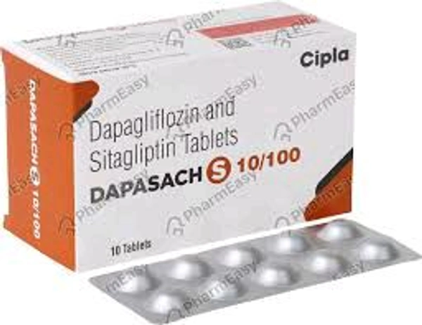 Dapasach S 10mg/100mg Tablet is a combination medicine that helps control blood sugar levels. This medicine is used together with diet and exercise to improve blood sugar control in adults with type 2 diabetes mellitus. It helps in proper utilization of insulin, thereby lowering the blood sugar level.