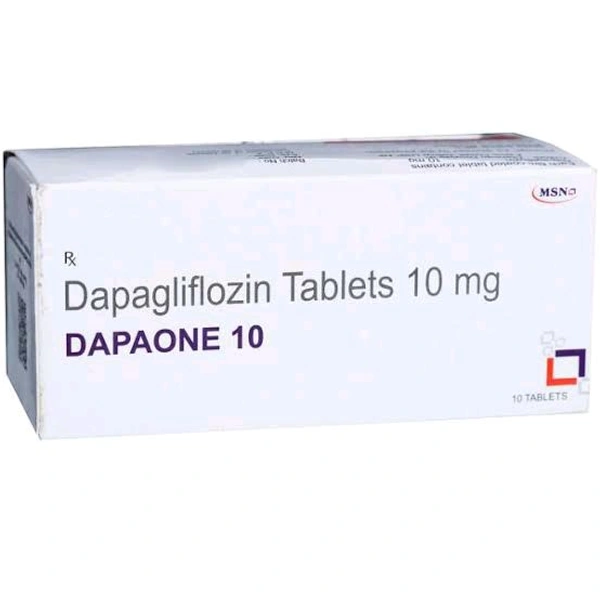 Dapaone 10mg Tablet is used for the management and treatment of type 2 diabetes. It contains Dapagliflozin, which works by inhibiting the reabsorption of glucose in the body, resulting in an increase in glucose excretion through urine. The removal of excessive glucose helps to lower down the blood sugar level. In some cases, you may experience side effects such as urinary tract infection, low blood sugar levels (hypoglycemia), peeing more than normal, skin rash, dizziness, increased thirst, or nausea. Before taking this medicine, you should tell your doctor if you are allergic to any of its components or if you are pregnant/breastfeeding, and about all the medications you are taking and pre-existing medical conditions