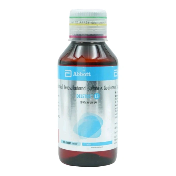Deletus-LS Syrup is used to treat cough associated with mucus. It works by relaxing muscles and widening the airways of the lungs. It thins and loosens phlegm (mucus) in the lungs, windpipe, and nose. Thereby, helping to cough out easily. It works by increasing the volume of fluid in the airways, reducing the stickiness of mucus, and helping to remove it from the airways. Some people may experience nausea, vomiting, drowsiness, headache, dizziness, skin rash, tremor, stomach upset and diarrhoea. Before taking this medicine, you should tell your doctor if you are allergic to any of its components or if you are pregnant/breastfeeding, and about all the medications you are taking and pre-existing medical conditions.