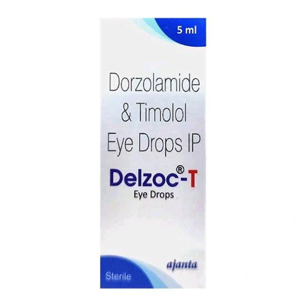 Delzoc-T Eye Drops 5 ml is used to treat open-angle glaucoma and ocular hypertension (high pressure in the eyes). It is generally used when no other medication effectively treats glaucoma or ocular hypertension. It contains Dorzolamide and Timolol, which help decrease the secretion of aqueous humour (natural fluid present in the eye) by the eye's ciliary body, thereby causing a decrease in eye pressure. In some cases, you may experience itching, stinging sensation, burning sensation in the eye, redness, blurred vision, tiredness, drowsiness, headache and dryness in the mouth. Before using this medicine, you should tell your doctor if you are allergic to any of its components or if you are pregnant/breastfeeding, and about all the medications you are taking and pre-existing medical conditions