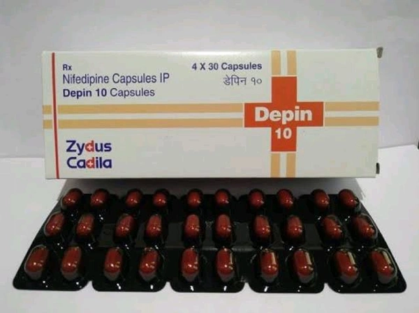 Depin 10 Capsule is a medicine used to treat high blood pressure (hypertension) and to prevent angina (heart-related chest pain). It belongs to a class of medicines known as calcium channel blockers. It lowers blood pressure and reduces the workload of the heart. This helps prevent heart attacks and strokes