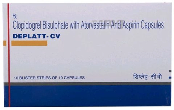 Deplatt-CV Capsule is a combination medicine that is used to prevent heart attack. It contains Atorvastatin that works by reducing the amount of “bad” cholesterol (LDL) and raising the amount of “good” cholesterol (HDL) in your blood. High levels of cholesterol can cause your blood vessels to narrow (atherosclerosis).