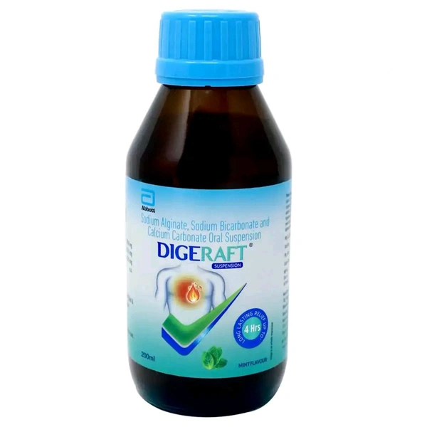 Digeraft Mint Oral Suspension is a gastrointestinal medicine used in the treatment of gastroesophageal reflux disease, heartburn, acidity, indigestion, and gastrointestinal distress. This is a combination medicine which works by decreasing the amount of acid in the stomach. You may experience common side effects like flatulence, diarrhoea, nausea, and vomiting.