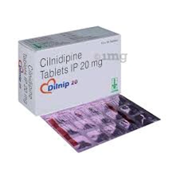 Dilnip 20 Tablet is a medicine used to treat high blood pressure (hypertension). It belongs to a class of medicines known as a calcium channel blocker which helps to lower blood pressure. This helps prevent heart attacks and strokes. It may also be prescribed to prevent angina (heart-related chest pain).