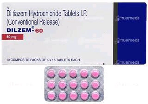 Dilzem 60 Tablet CR is used to treat angina (heart-related chest pain), high blood pressure, and some types of irregular heartbeats (arrhythmia). It is known as a calcium channel blocker. It works by relaxing blood vessels to lower blood pressure. This helps to reduce the workload of the heart.
