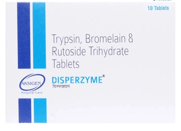 Disperzyme Tablet is used to relieve musculoskeletal pain in the conditions of osteoarthritis, rheumatoid arthritis, and ankylosing spondylitis. It prevents cell damage, reduces toxins, protects the body from damage caused by free radicals (toxins), and decreases swelling. Also, it removes dead skin cells and allows the growth of healthy tissue. In some cases, it may cause side effects such as experience vomiting, nausea, diarrhea, rash, or mouth sores. Before taking this medicine, you should tell your doctor if you are allergic to any of its components or if you are pregnant/breastfeeding, and about all the medications you are taking and pre-existing medical conditions