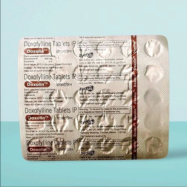 Doxolin 400 tablet is used for the treatment of bronchial asthma and chronic obstructive pulmonary disease (COPD). This medicine relaxes the smooth muscle of the airways, thus widening the airway and easing the breath.