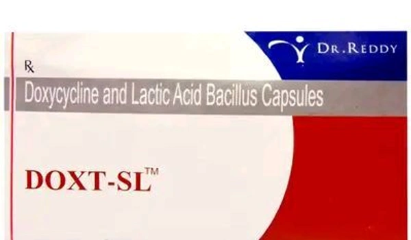 Doxt-SL Capsule is used to treat bacterial infections such as urinary tract infections, intestinal infections, respiratory infections, eye infections, gum infections, and sexually transmitted infections. It contains Doxycycline and Lactic acid bacillus, which work by inhibiting the synthesis of essential proteins which are necessary for their survival, thereby killing the infection-causing bacteria. It also helps restore the balance of good bacteria in the gut. In some cases, this medicine may cause side effects such as nausea, vomiting, loss of appetite, and stomach upset.