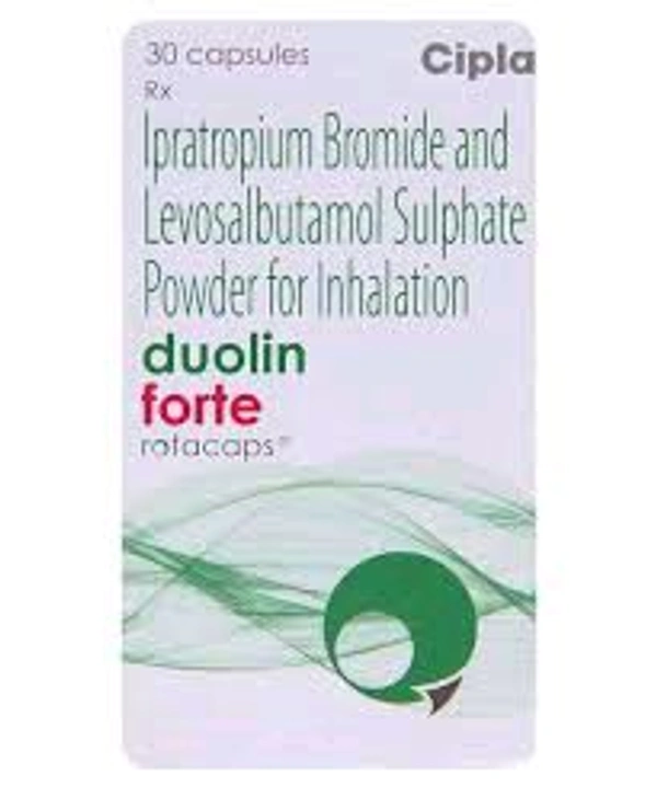 DUOLIN FORTE ROTACAP is a combination of Ipratropium and Levosalbutamol which belongs to the group of medicines called Bronchodilator agents and Adrenergic beta-agonists, respectively. DUOLIN FORTE ROTACAP is used to manage chronic obstructive pulmonary disease (inflammatory lung disease that obstructs airflow from lungs) in patients who are on regular bronchodilator (type of medication that makes breathing easy) or who suffer from an evident bronchospasm and require a second bronchodilator for ease of breathing.