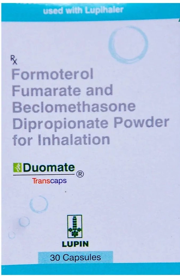 Duomate Transcaps is used in the treatment of asthma (wheezing and shortness of breath) and chronic obstructive pulmonary disorder (a lung disorder in which the flow of air to the lungs is blocked). It relaxes the muscles of the air passages and making it easier to breathe.