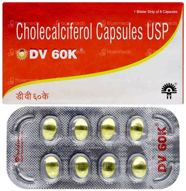 DV 60K Capsule is used to treat low blood calcium levels. It effectively treats various conditions in the body, like Vitamin D deficiency, osteoporosis, and rickets or osteomalacia. DV 60K Capsule contains Cholecalciferol (Vitamin D3).