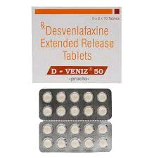 D Veniz 50MG tablet is an effective medicine used to treat depression, a mood disorder characterized by extreme sadness, irritability and loss of interest in activities. It helps by increasing the level of chemical messengers (serotonin and noradrenaline) in the brain and relaxes the nerves, thus treating depression