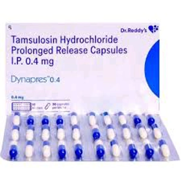 Dynapres 0.4 Capsule contains tamsulosin (alpha-blocker), which primarily treats the enlarged prostate gland. This decreases urinary problems, like difficulty in passing urine and a frequent urination urge. Dynapres 0.4 Capsule makes it easy to pass urine by relaxing the gland muscles.