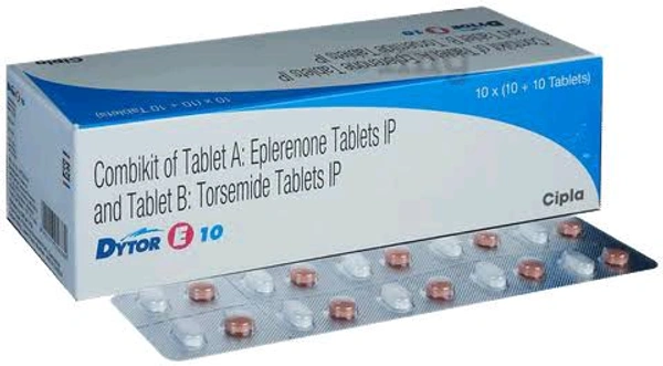 Dytor E 10 Combi Kit is primarily used to remove excess water from the body. It also maintains the bloodstream's potassium level and prevents hypertension (high blood pressure) due to oedema (fluid retention). Dytor E 10 Combi Kit is a combination of medications containing Eplerenone and Torsemide.