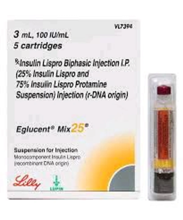 Eglucent Mix 25 Suspension for Injection (3ml Each) is a combination of two medicines used to improve blood sugar control in people with type 1 and type 2 diabetes mellitus.