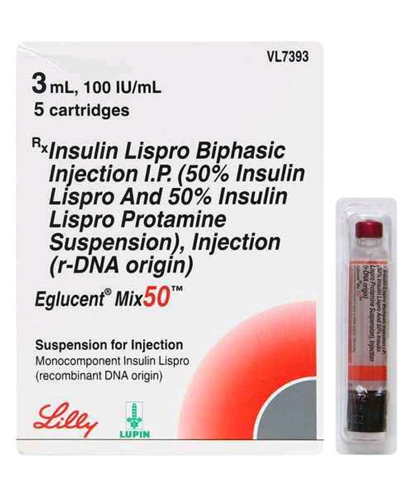 Eglucent Mix 50 100IU/ml Suspension for Injection is a combination of two medicines used to improve blood sugar control in people with type 1 and type 2 diabetes mellitus.