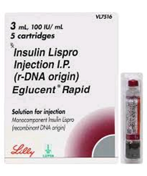 Eglucent Rapid (3ml Each) Solution for Injection is used to improve blood sugar control in people with type 1 and type 2 diabetes mellitus. It's a fast-acting type of insulin that helps to lower blood sugar levels after meals and reduce the chances of developing serious complications of diabetes.