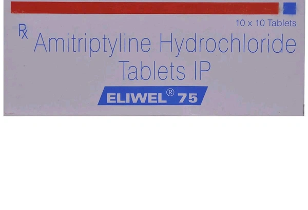 Eliwel 75 Tablet is used to treat depression, neuropathic pain, chronic tension-type headaches, and migraine in adults. Additionally, it is also used to treat bedwetting at night in children aged 6 years and above. It contains Amitriptyline, which works by affecting certain chemical messengers (serotonin and norepinephrine) in the brain, which communicate between brain cells, thereby helping to regulate mood and prevent depression. Additionally, it reduces the transmission of pain signals, thereby providing relief from neuropathic pain. In some cases, you may experience certain common side effects such as sleepiness, drowsiness, headache, irregular heartbeat, dry mouth, constipation, nausea, weight gain, slurred or slow speech, and a congested nose. Before taking this medicine, you should tell your doctor if you are allergic to any of its components or if you are pregnant/breastfeeding, and about all the medications you are taking and pre-existing medical conditions.