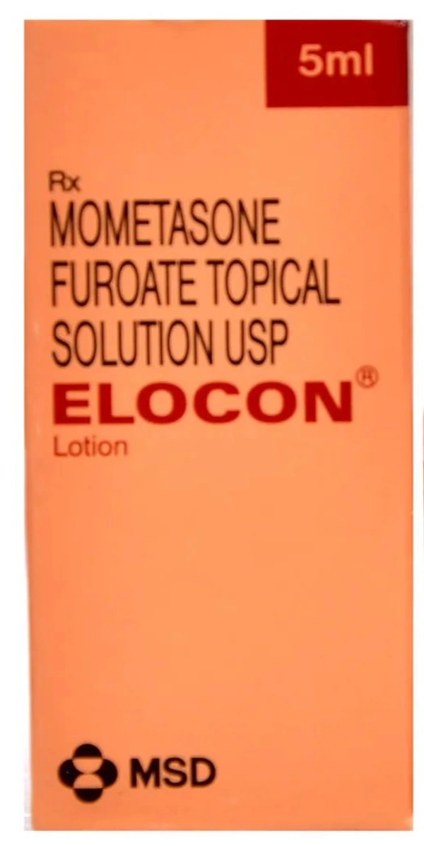 Elocon Lotion 5 ml is used to reduce inflammation (swelling), itchiness and redness caused by certain skin problems called dermatitis or psoriasis. It contains Mometasone, which works by acting inside skin cells and inhibiting the release of certain inflammatory substances in the body that cause redness, itching, and swelling. Some people may experience side effects such as inflamed hair follicles, acne, thinning of the skin, itching, stinging, tingling or burning sensation. Before using this medicine, you should tell your doctor if you are allergic to any of its components or if you are pregnant/breastfeeding, and about all the medications you are taking and pre-existing medical conditions.