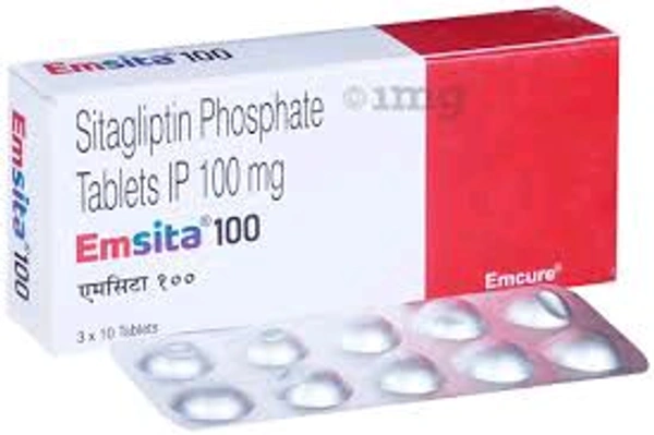 Emsita 100mg Tablet is a medicine used to treat type 2 diabetes mellitus. It is used together with a healthy diet and regular exercise to control blood sugar levels. This helps to prevent serious complications of diabetes like kidney damage and blindness.