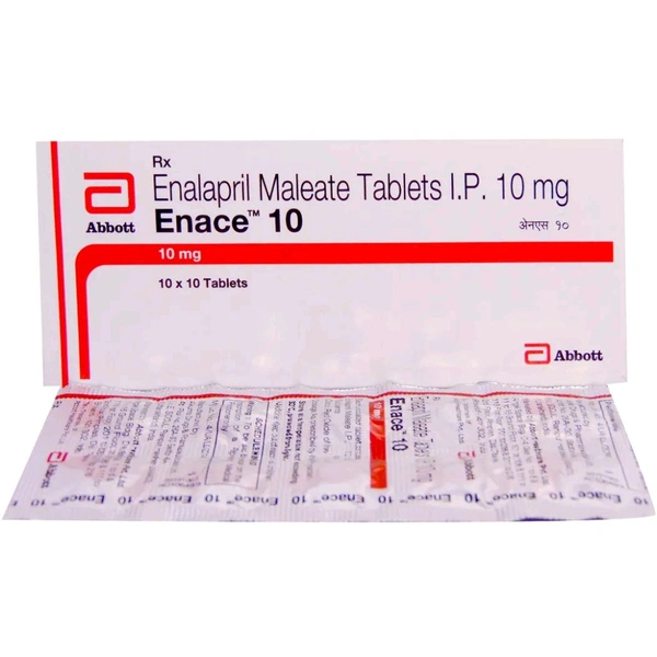 ENACE 10MG TABLET is used to treat high blood pressure and heart failure. It contains Enalapril, which widens and relaxes the blood vessels and, therefore, help lower high blood pressure. In some cases, you may experience side effects such as headaches, ankle swelling, slow heart rate, and nausea. Before taking this medicine, you should tell your doctor if you are allergic to any of its components or if you are pregnant/breastfeeding, and about all the medications you are taking and pre-existing medical conditions.