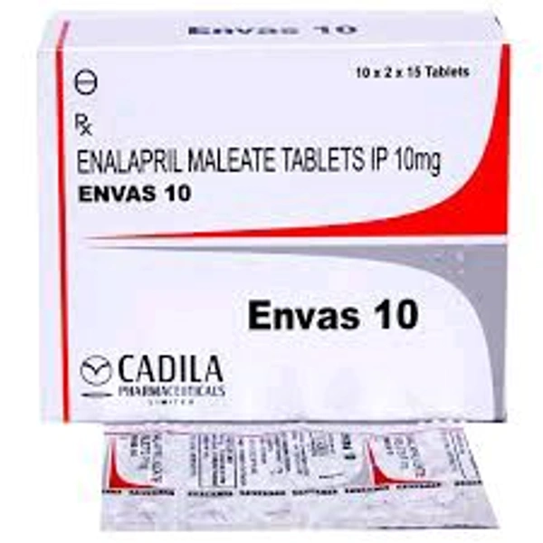 Envas 10 Tablet belongs to a group of medicines known as angiotensin-converting enzyme (ACE) inhibitors. It is widely used to treat high blood pressure and heart failure and may be prescribed after a heart attack. It also lowers the chances of having a heart attack or stroke