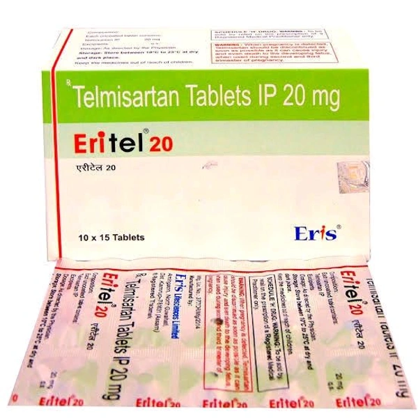 Eritel 20 Tablet is a medicine used to treat high blood pressure and heart failure. Lowering blood pressure helps prevent future heart attacks and strokes. This medicine is also effective in preserving kidney function in patients with diabetes.