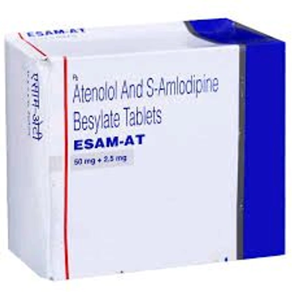 Esam-AT Tablet is used to treat hypertension (high blood pressure) and angina. This is a combination of two medicines that controls blood pressure when a single medication is not effective. It helps to lower high blood pressure and thus reduces the chances of future heart attack and stroke.