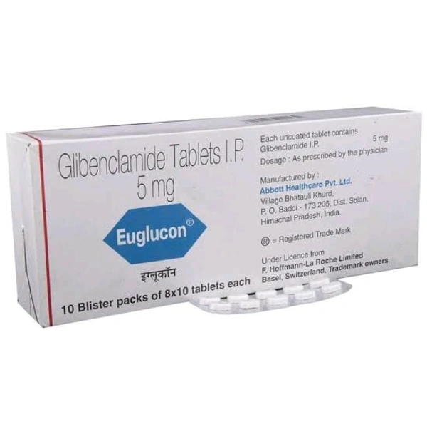 Euglucon Tablet is a medicine used to treat type 2 diabetes mellitus in adults. It belongs to a group of medicines called sulfonylureas and helps control blood sugar levels in people with diabetes. This helps to prevent serious complications of diabetes like kidney damage and blindness.