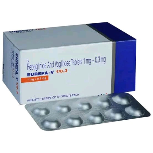 Eurepa-V 0.5/0.3 Tablet is a combination of two medicines used to treat type 2 diabetes mellitus. It helps control the high blood sugar levels in your body after each meal. It is used when other similar medicines along with a restricted diet, are unable to control abnormally high blood sugar levels.