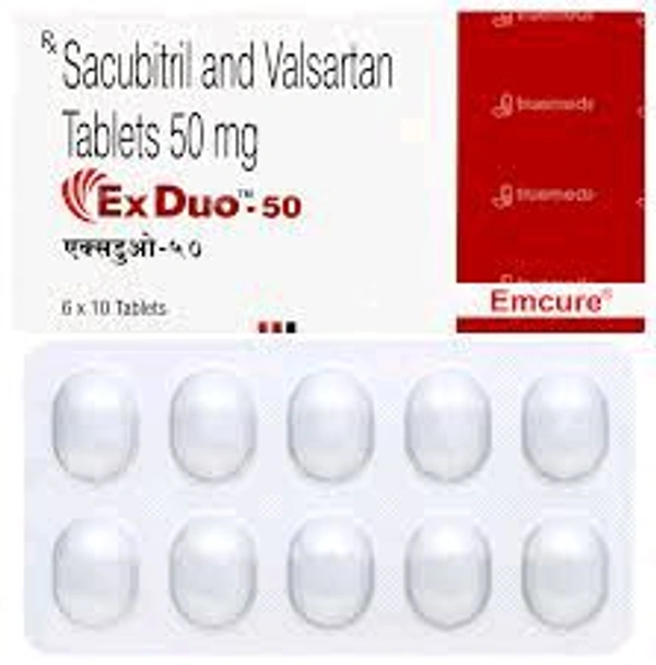 Ex Duo-50 Tablet is used to treat heart failure. It helps reduce the risk of hospitalisation and death in adults with chronic heart failure. It works by relaxing and widening the blood vessels and making it easier for the heart to pump blood to all body parts