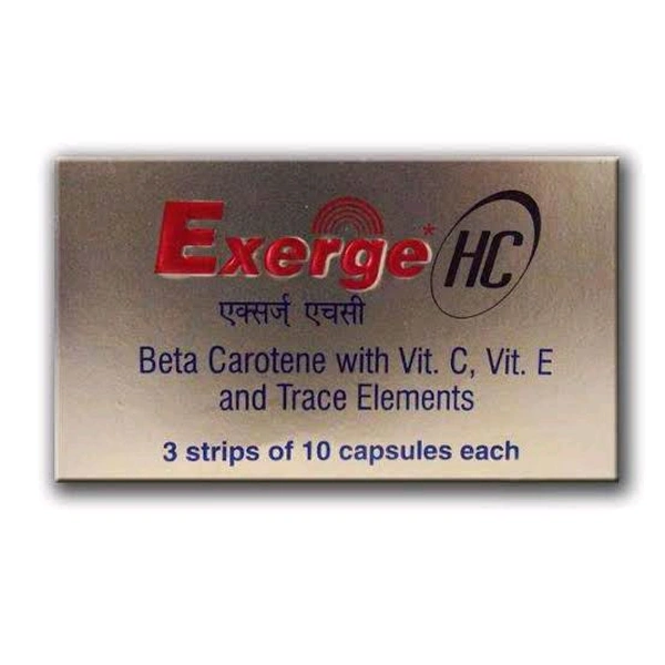 Exerge Hc Capsule is commonly used for the diagnosis or treatment of alcoholism , age related macular degeneration, aids. It has some side effects such as Anemia,Abdominal cramps,Cholestatic jaundice,Bloody diarrhea. The salts Beta Carotene, Cupric Oxide, Manganese, Sodium Selenate, Vitamin C, Vitamin E, Zinc Oxide are involved in the preparation of Exerge Hc Capsule.
