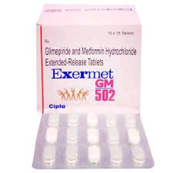 Exermet GM 502 Tablet PR is a combination of two medicines: Glimepiride and Metformin. This medicine is used in the treatment of type 2 diabetes mellitus (DM). It improves blood glucose levels in adults when taken along with proper diet and regular exercise.