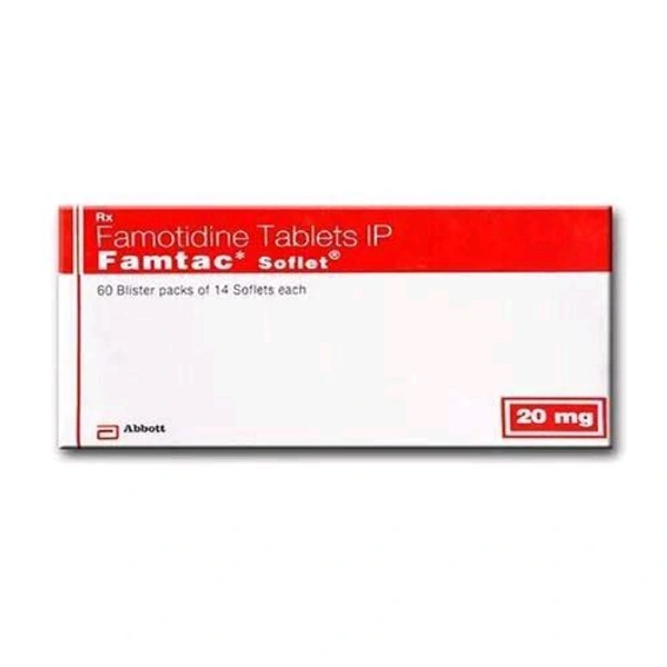Famtac 20mg Soflets is an antacid. It reduces the amount of acid produced by your stomach. It is used to treat and prevent heartburn, indigestion and other symptoms caused by too much acid in the stomach. It is also used to treat and prevent stomach ulcers, reflux disease and some other rare conditions.