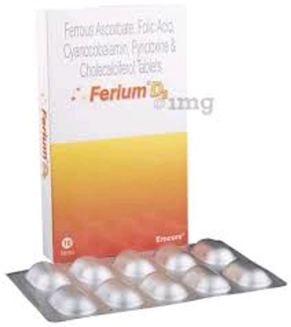 Ferium D3 Tablet is an iron supplement used to manage iron deficiency anemia. It contains iron, folic acid and cyanocobalamin which plays an important role in the synthesis of newer red blood cells. Iron present in the medicine replenishes iron stores in the body.