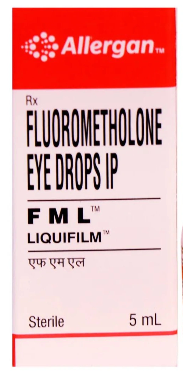 FML Liquifilm Drops 5 ml is used to treat various eye conditions caused by infection, inflammation, or injury in adults and children above 2 years of age. It contains Fluorometholone, which decreases the activity of the provoked immune system, thereby blocking white blood cells (WBC) from attacking our own body cells. This results in a decreased release of chemicals (prostaglandin) that cause pain and inflammation. It causes constriction of blood vessels, decreasing the access of cells to the site of injury and reducing the swelling, pain, and discomfort in the eyes. A common side-effect of this medicine is increased pressure inside the eye. If you notice any persistent vision problems while using this medicine, consult your doctor immediately.