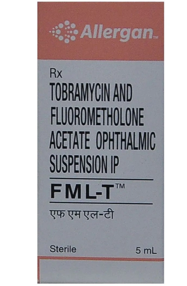FML-T Eye Drops 5 ml is used to treat bacterial infections of the eye. It contains Tobramycin and Fluorometholone which work by killing the infection-causing bacteria and blocking the chemical messengers that cause swelling, itching, and redness. In some cases, this medicine may cause side effects such as mild burning or stinging sensation in the eye, or eye discomfort. Avoid touching the tip of the container to the eye, eyelids, or surrounding areas as it may contaminate the product
