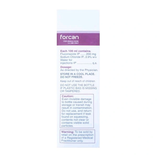 FORCAN INFUSION contains Fluconazole which belongs to the group of medicines called Antifungal agents. It is used in adults and children for the management fungal infections including candidiasis, mucosal thrush (infection affecting the lining of mouth, throat, esophagus, bronchuses and lungs) when oral management is not possible and cryptococcal meningitis (fungal infection in the brain).