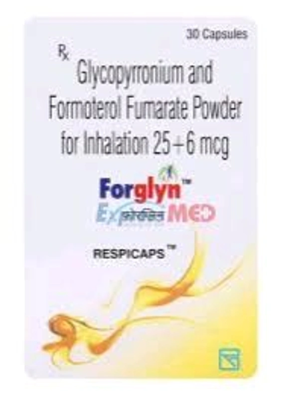 Forglyn Respicaps, manufactured by German Remedies (a Zydus Group company), is a combination inhalation medication used for the long-term maintenance treatment of Chronic Obstructive Pulmonary Disease (COPD). It contains Formoterol (a LABA) and Glycopyrrolate (a LAMA) to relax airway muscles, decrease secretions, and ease breathing.