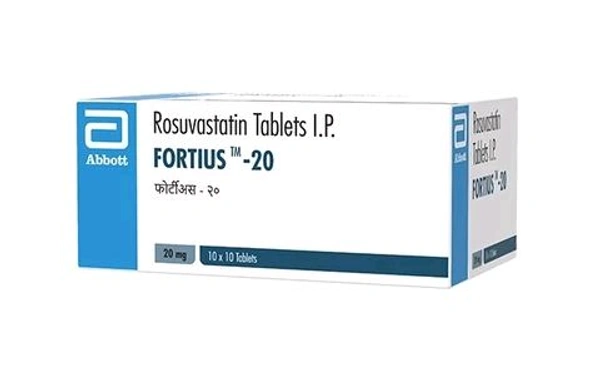 Fortius-20Tablet is used in the treatment of high cholesterol and to reduce the risk of stroke and heart attack. It contains Rosuvastatin, which slows down cholesterol production in the body and decreases the amount of cholesterol that may build up on the arteries walls and block blood flow to brain, heart and other body parts. Thus, it lowers cholesterol and fats levels and helps to prevent stroke, heart disease and heart attack. It may cause side effects such as myalgia (muscle pain), asthenia (lack of energy), nausea, headache, abdominal pain, muscle pain, weakness, and daytime drowsiness. Before taking this medicine, you should tell your doctor if you are allergic to any of its components or if you are pregnant/breastfeeding, and about all the medications you are taking and pre-existing medical conditions
