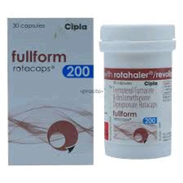 Fullform 200 Rotacap is a combination of two medicines: Beclometasone and Formoterol. Beclometasone is a steroid. It gets absorbed into the cells of the inner surface of the nose and works by blocking the production of certain chemical messengers that cause inflammation (swelling) and allergies.