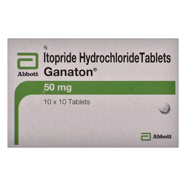 Ganaton 50 mg Tablet is used in the treatment of the disorders associated with reduced gastrointestinal motility. Besides this, it also treats gastrointestinal disorders like dyspepsia (indigestion), bloating (feeling of stomach tightness due to gas), upper abdominal pain, anorexia (eating disorder), heartburn, nausea and vomiting. It contains Itopride, which works by increasing the gastrointestinal peristalsis movement, thereby accelerating gastric emptying time and easing the movement of food through the entire gastrointestinal tract. It also stops the sensation of vomiting/nausea. In some cases, you may experience diarrhoea, stomach pain, headache, dry mouth or drowsiness.