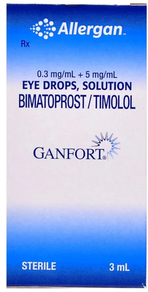 Ganfort Eye Drops 3 ml is used to treat raised/increased pressure in the eye. It may lead to an illness called glaucoma. It is used alone or in combination with other drugs. It contains Bimatoprost and Timolol, which works by increasing the drainage of aqueous humour (fluid in the eye) from the eye and reducing eye pressure. Also, it works by decreasing the fluid production in the eye, as the increased pressure can lead to a disease called glaucoma. It may cause side effects such as eye pain, darkening of eyelashes, stinging sensation, irritation, foreign body sensation, change in the iris colour, itching, and burning sensation in the eye. Before using this medicine, you should tell your doctor if you are allergic to any of its components or if you are pregnant/breastfeeding, and about all the medications you are taking and pre-existing medical conditions. If you wear contact lenses, remove them before using this medicine, and you can put them back 15 minutes after using it.