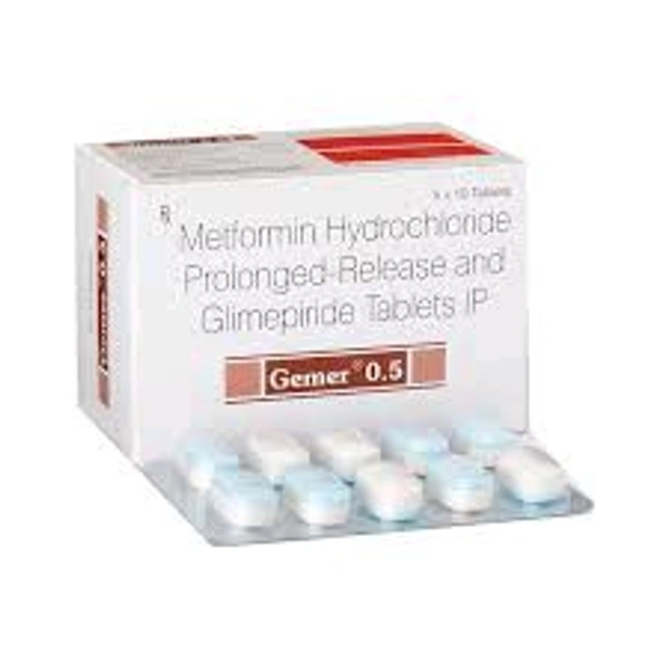 Gemer 0.5 Tablet PR is a combination of two medicines: Glimepiride and Metformin. This medicine is used in the treatment of type 2 diabetes mellitus (DM). It improves blood glucose levels in adults when taken along with proper diet and regular exercise.11 Feb 2025
