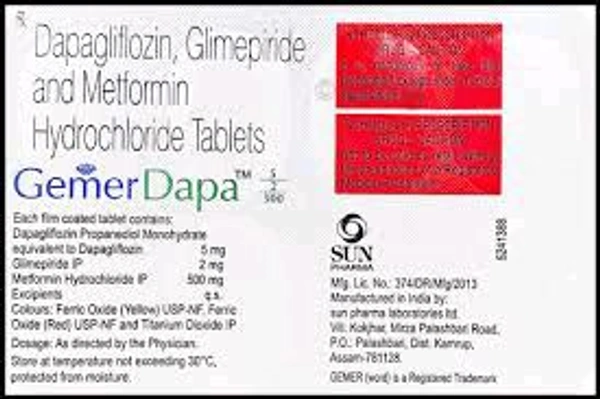 Gemer Dapa 5/2/500 Tablet is a combination of three medicines used to treat type 2 diabetes mellitus. It helps control the high blood sugar levels seen in diabetes. This reduces the chances of serious complications of diabetes and also helps prevent heart disease.