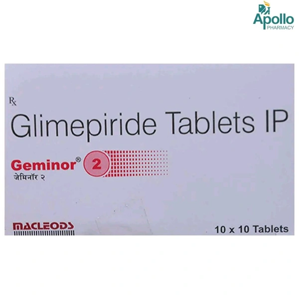Geminor 2 mg Tablet is used to lower raised blood sugar levels in Type 2 diabetes mellitus (non-insulin-dependent diabetes mellitus - NIDDM). It contains Glimepiride which acts on insulin-secreting cells called beta cells inside the pancreas and activates calcium channels on cells which lets insulin pass out of the cell. This insulin then makes each cell in the body take up glucose and utilize it, thus lowering raised blood glucose. It may cause side effects such as allergic reaction (skin rash, hives, sensitivity to sun rays), liver dysfunction (jaundice, bile duct blockage, and hepatitis), seizures, or low glucose levels. Before taking this medicine, you should tell your doctor if you are allergic to any of its components or if you are pregnant/breastfeeding, and about all the medications you are taking and pre-existing medical conditions.