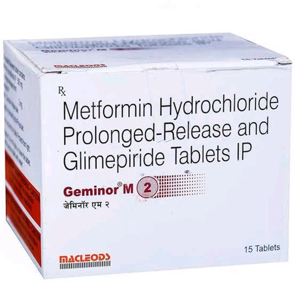 Geminor M 2 Tablet is used to treat type 2 diabetes. It contains Glimepiride and Metformin which works by decreasing the amount of glucose absorbed from the food and the amount of glucose made by the liver. It helps the pancreas to produce insulin and helps the body use insulin efficiently. In some cases, this medicine may cause side effects such as stomach pain, nausea, diarrhoea, vomiting, headache or metallic taste. Inform the doctor if you are pregnant or breastfeeding, taking any other medication, or have any pre-existing medical conditions.
